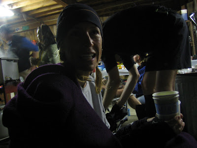 I first tested out my Twilight Nuu-Muu while pacing Michelle (far left) through the night at the 2009 Vermont 100 Endurance Run. My dress held up well while wearing a hydration pack! (Michelle broke 28 hours and at the time this photo was taken she's already been awake for 30+ hours.)